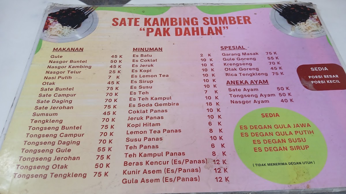 The dining ambiance reflects a simple, outdoor Indonesian style, emphasizing flavorful dishes over frills. Though service can be slow and the location a bit off the city's center, the generous portions and clean, bright setting make it worth the journey. Whether craving expertly grilled lamb or richly spiced stews, Sate Kambing Sumber Pak Dahlan delivers an authentic, deeply satisfying taste of Javanese lamb cuisine.
